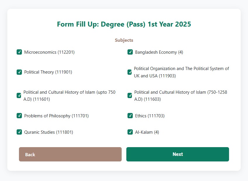 Step-2. Subject Selection ( বিষয় নির্বাচন)