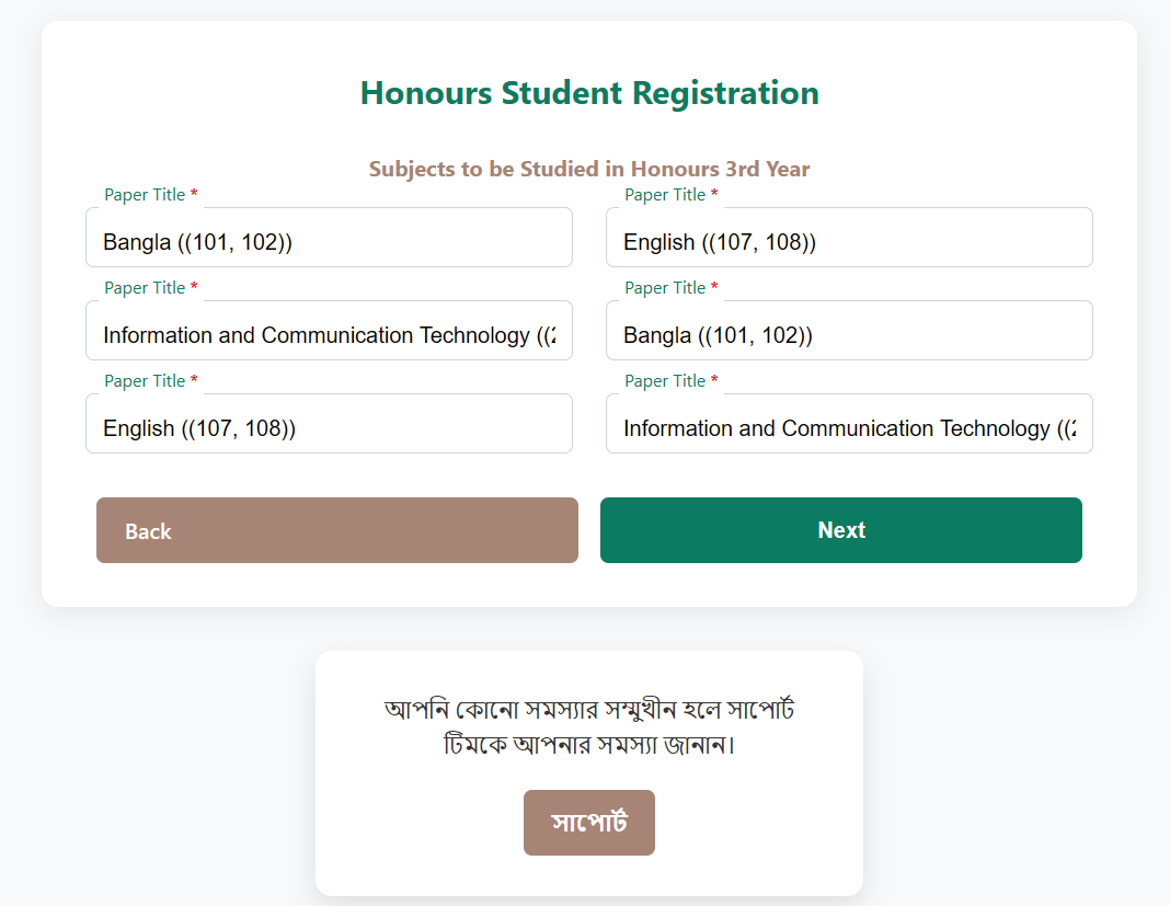 honours-subject Academic Year অনুযায়ী পঠিতব্য বিষয়গুলো সঠিক আছে কি না দেখে নিন।honours-subject-choice