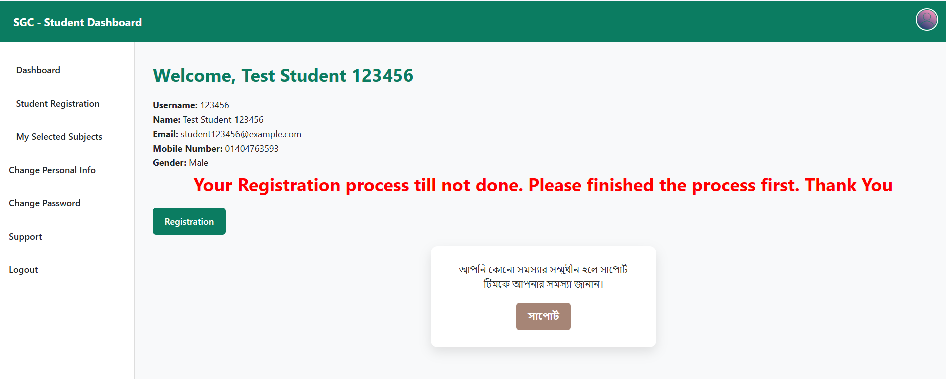 ৫. শিক্ষার্থী তার সরবরাকৃত সকল তথ্য সঠিক আছে কিনা তা এক নজরে দেখার জন্য পুনরায় Login Panel এ গিয়ে Student Portal এ প্রবেশ করবে।