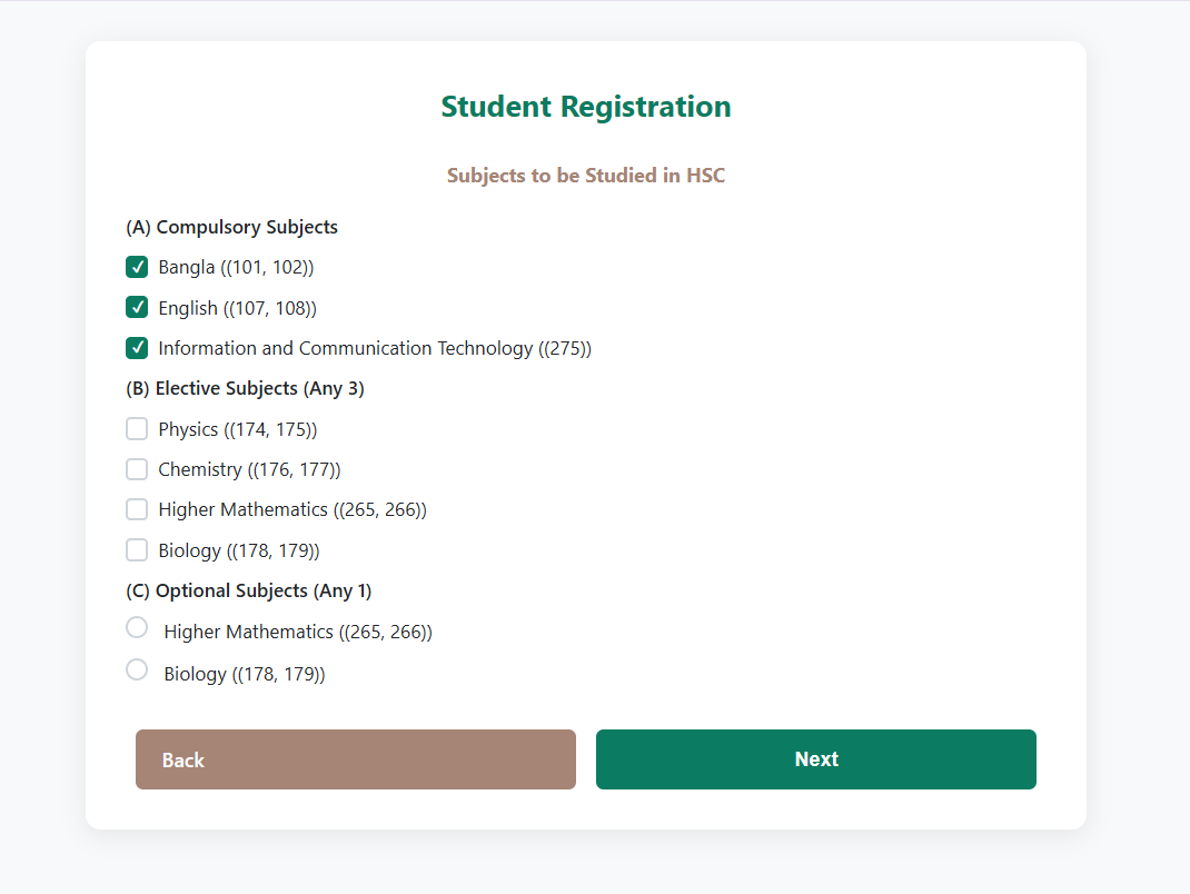 Step-5. HSC Subject Selection (এইচএসসি বিষয় নির্বাচন)