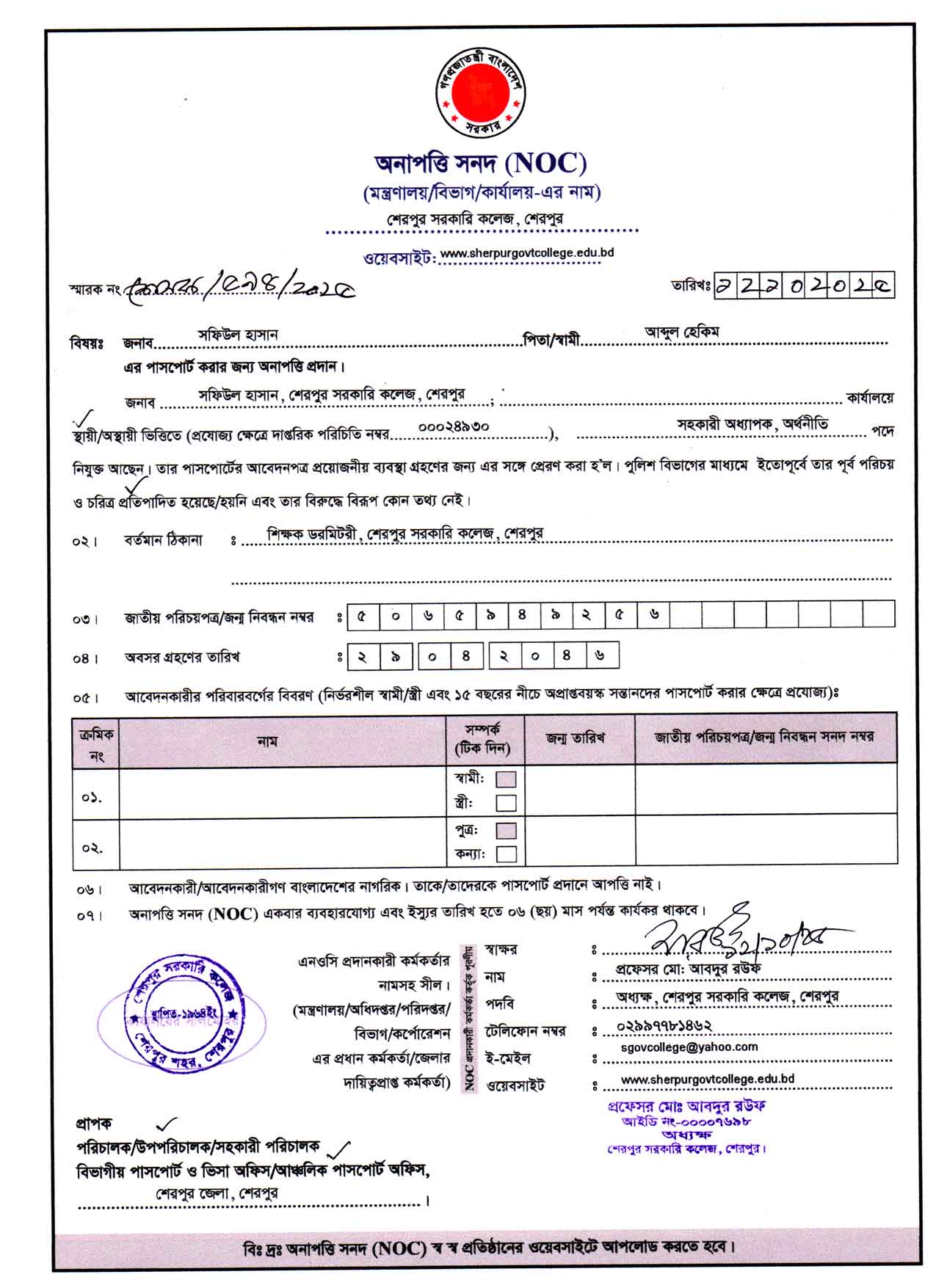 জনাব সফিউল হাসান, সহকারী অধ্যাপক, অর্থনীতি এর অনাপত্তিপত্র (NOC)