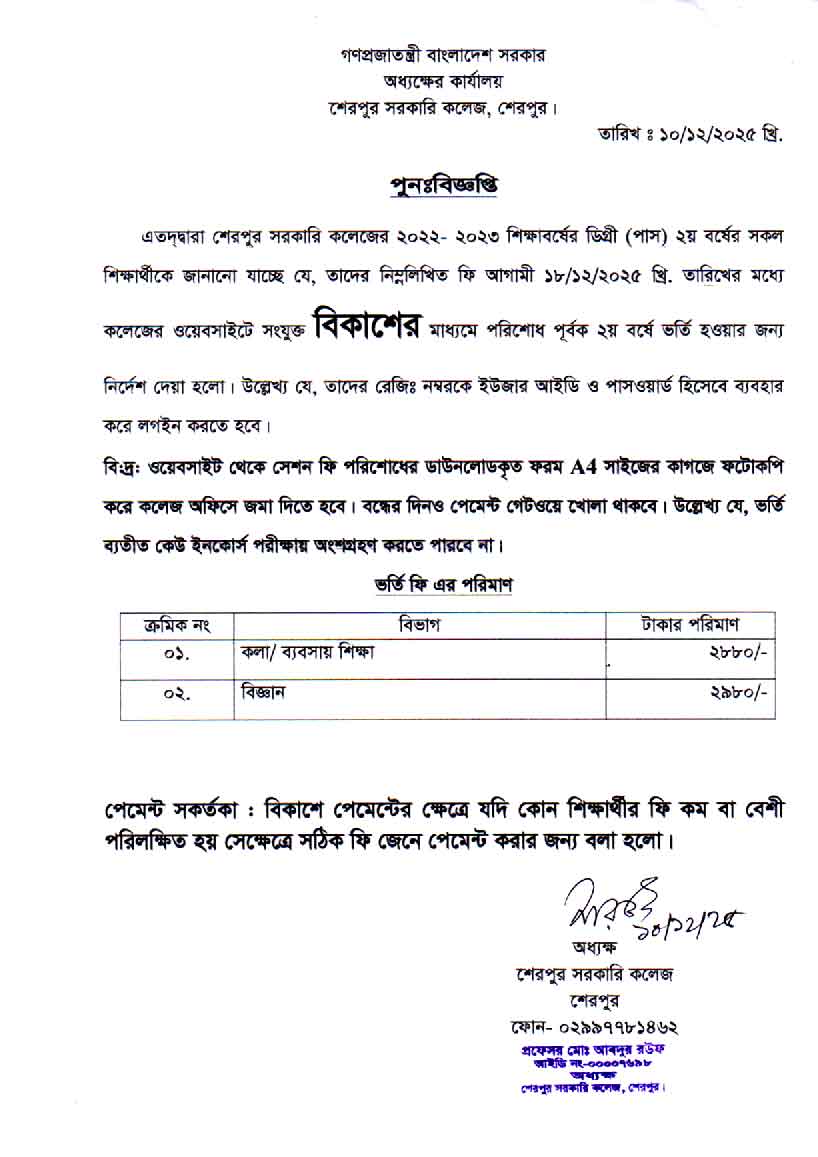 ২০২২-২০২৩ শিক্ষাবর্ষে ডিগ্রী (পাস) ২য় বর্ষের শিক্ষার্থীর ভর্তি কার্যক্রম শুরু হয়েছে।
